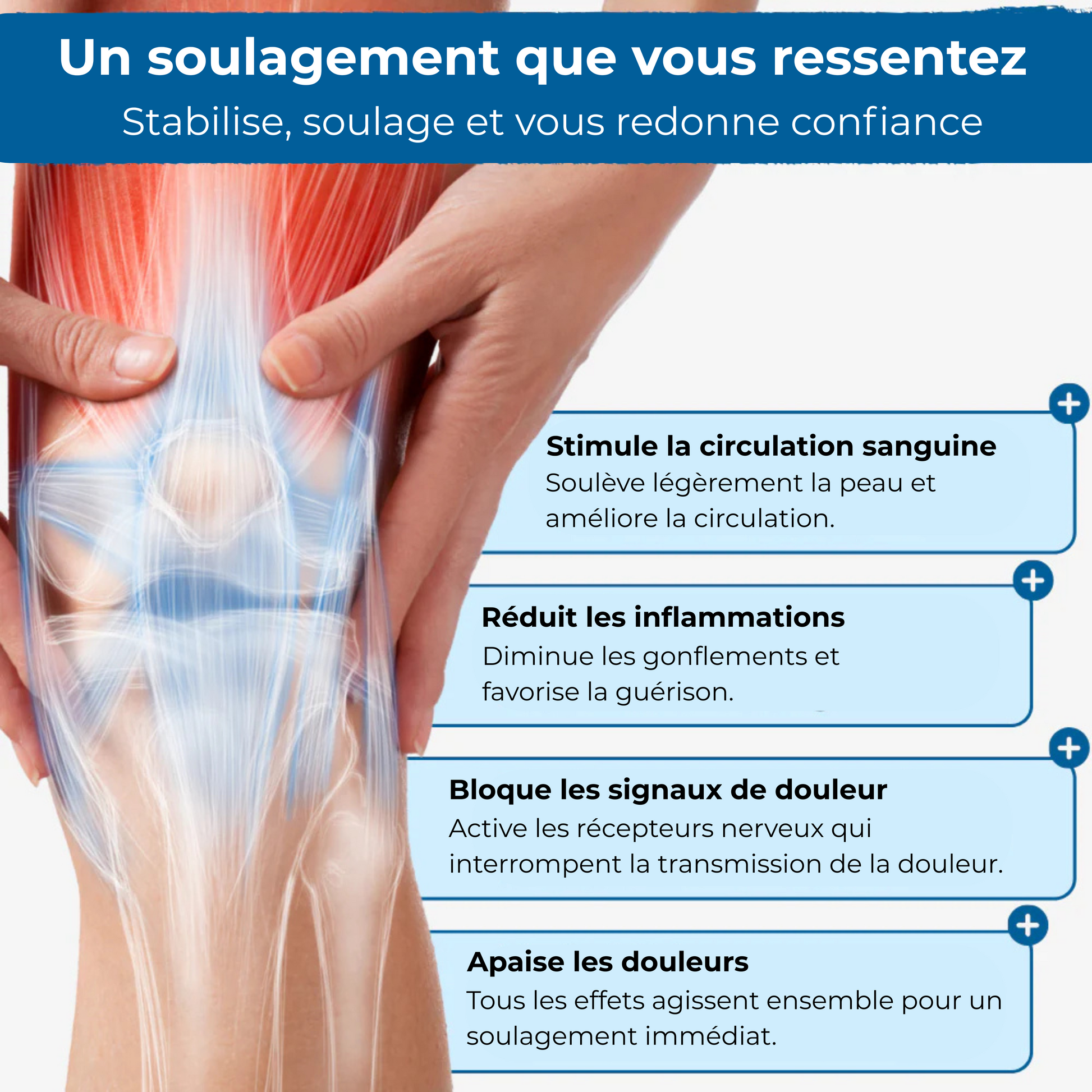 Oui, de nombreuses études et expériences concrètes montrent que le straps de kinésiologie peut favoriser la circulation, réduire les gonflements et améliorer la mobilité. Plus de 75 % de nos clients constatent un soulagement notable, souvent en seulement 1 à 2 jours. Le CLEFIO STRAPS™ est particulièrement efficace car il est préformé spécifiquement pour le genou.